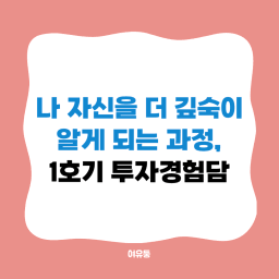 나 자신을 더 깊숙이 알게 되는 과정, 1호기 투자경험담 [여유둥]