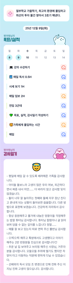 [열기89기 농부처럼 ㅆ1뿌려서 8채로 은퇴할조 하루쌓기] 251209 목실감