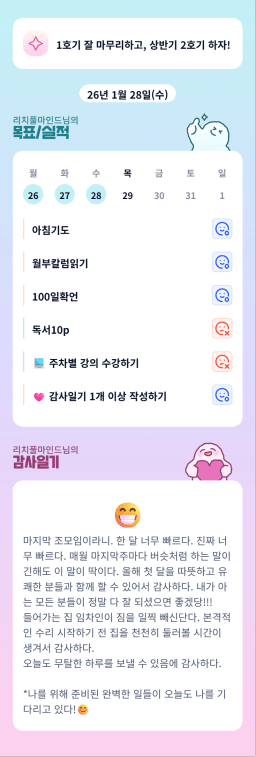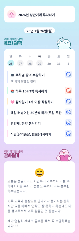 [지투실전 27기 쑤튜님과함께 🌱쑤욱쑤욱 성장하는 2린0ㅣ들 더나은라이프] 1/26-28 목실감