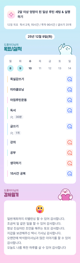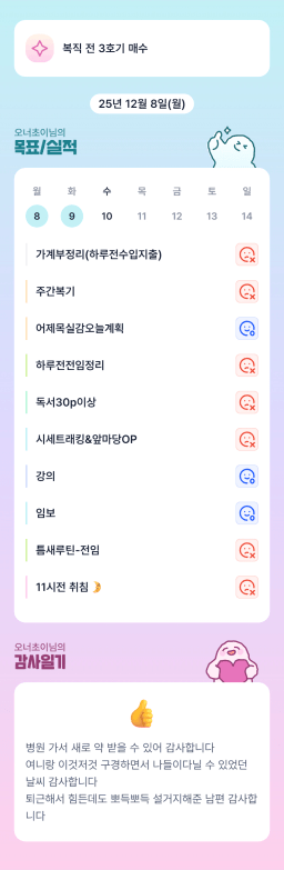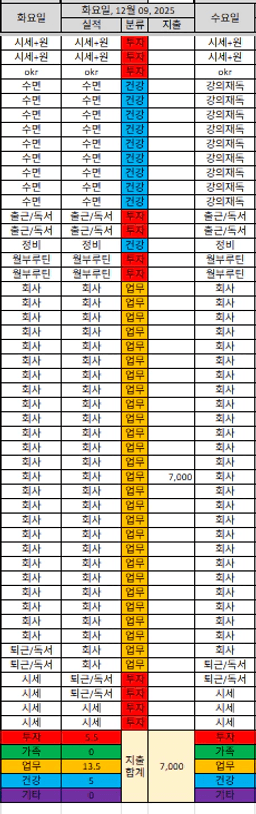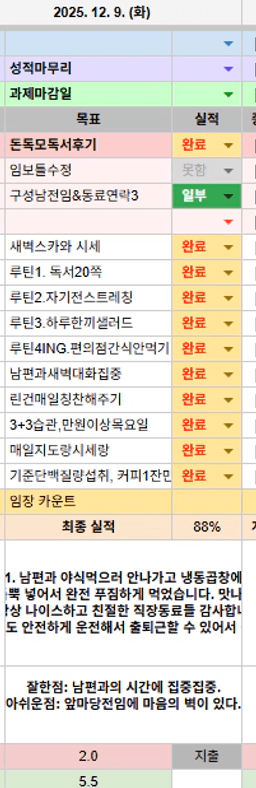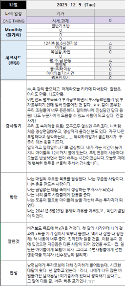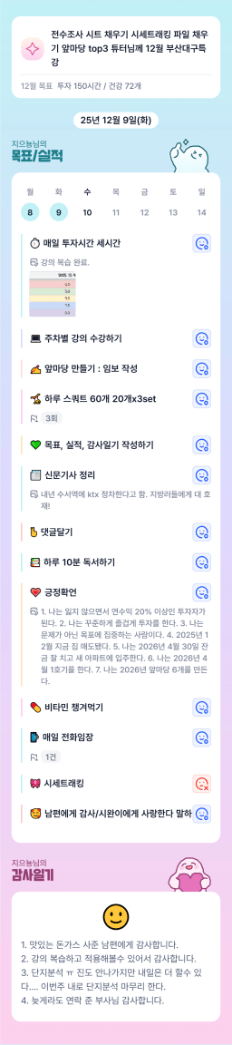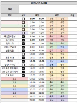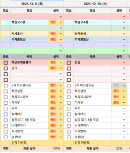 25년 12/10 목표,실적,감사일기,시간가계부[헤라클래스]