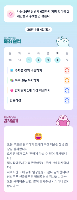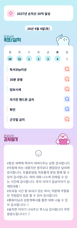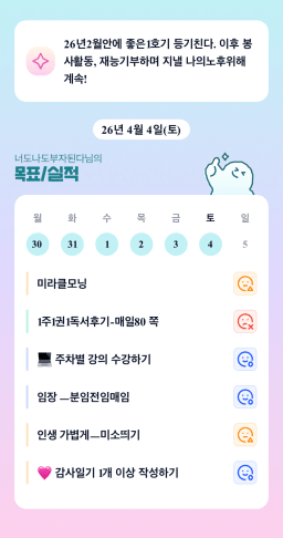 [하나씩] 20260404목실감 누적 62일, 연속 5일 진행중