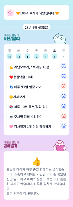 [유나엄마최고] 목실감 누적 95일, 연속 7일 진행중