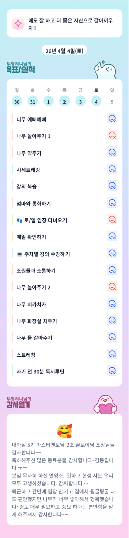 [행복한 투자자 여름꽃길] 목실감 26.3.4 누적 238일, 연속 219일 진행중