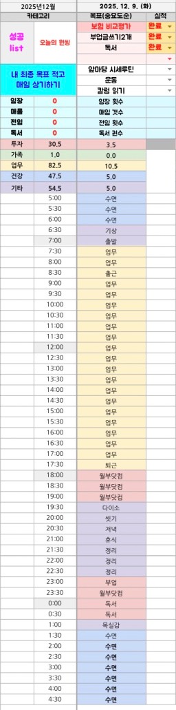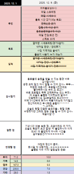 [홍드림] 12/9실적 및 12/10목표, 감사일기