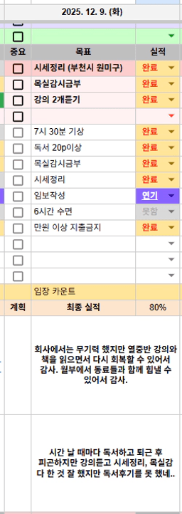 [행복한금붕이] 매일목실감 (20251209) D+231