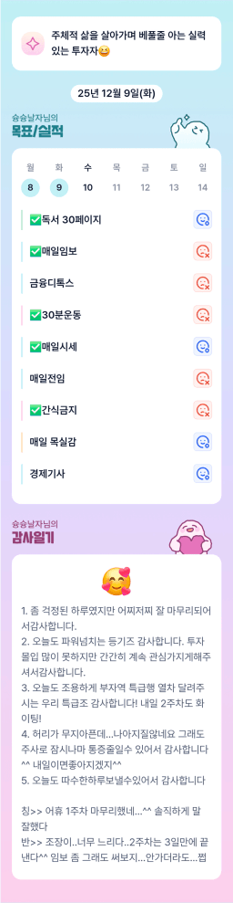[성장함🧡] (2025.12.09.) DAY313 목표,실적,감사일기,시간가계부
