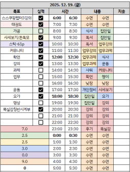 [짱이사랑맘] 12/19 목실감칭반시계부