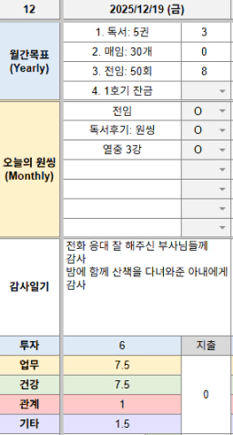 12/20 목/실/감 & 시간가계부 [해바라기v]