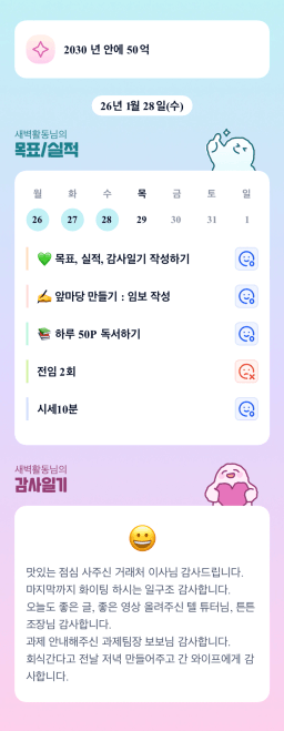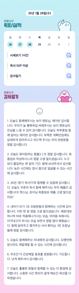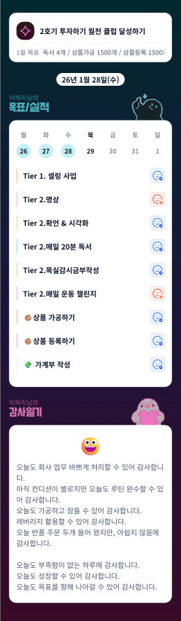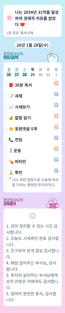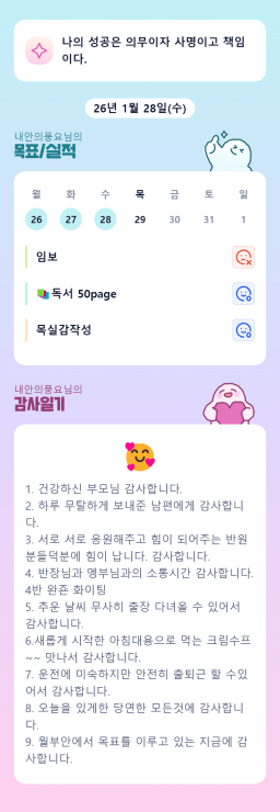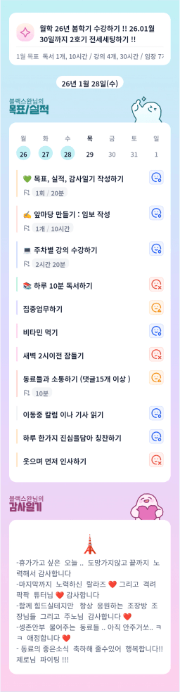 [정의] 2026년 1월 29일 목표, 실적, 감사일기