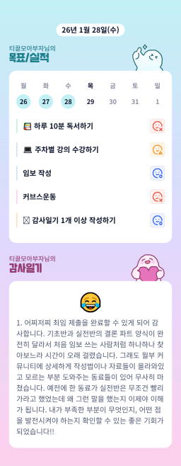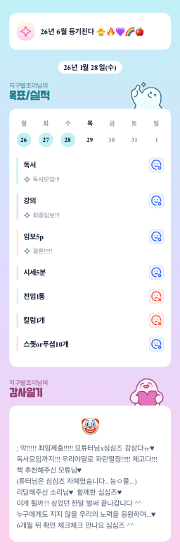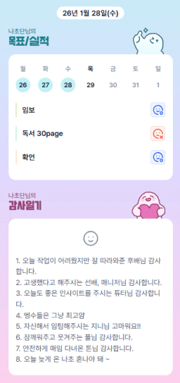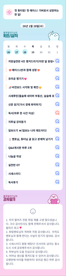 [지투실 27기 미요미우 튜터님과 2심전심 S2 지구별조이] 매일목실감 260128