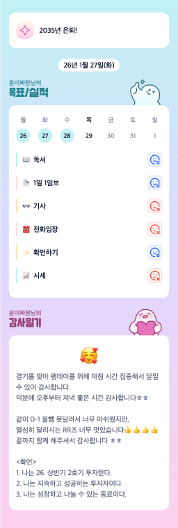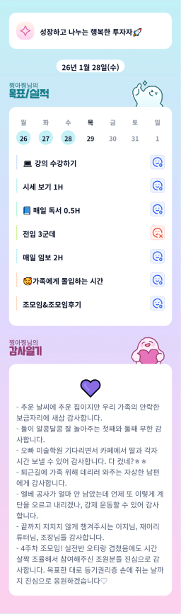 [지투실전 27기 쑤튜터님과함께쑤욱쑤욱성장하는2린0ㅣ들 티끌모아부자] 26.01.28 목실감