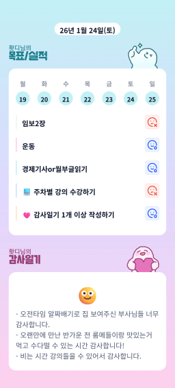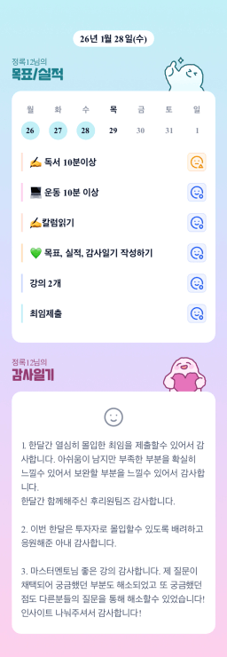 [지투27기 민튜터님과 10억부자 갱스터들 홧디] '26.1.24.~1.28. 목실감