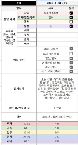 [오엪씨] 1/26 ~ 1/28 목실감시계부
