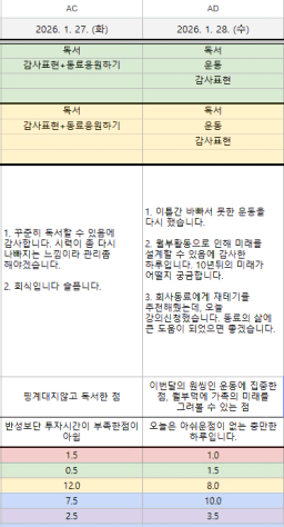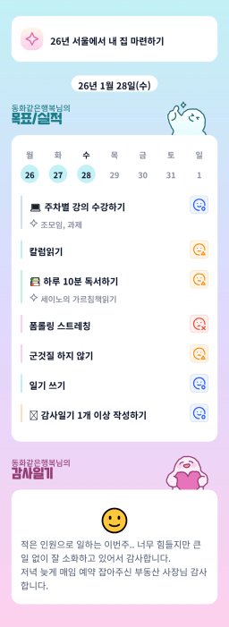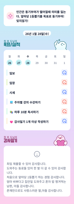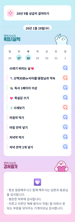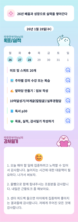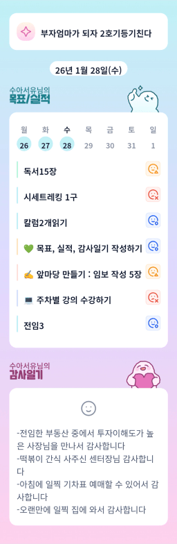 [짱이사랑맘] 1/28 목실감칭반시계부