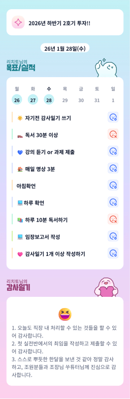 [지투실전 27기 쑤튜님과함께 🌱쑤욱쑤욱 성장하는 2린0ㅣ들 리치토]26.01.28. 목실감