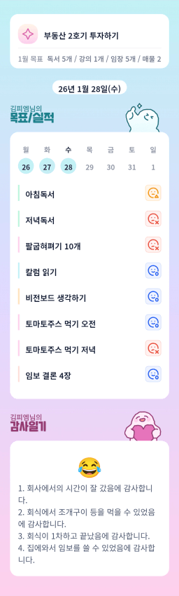 01/28 목표,실적,감사일기,시간가계부 [김실력]