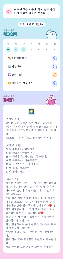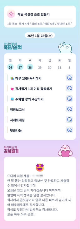 [지투실 27기 밍튜터님ㅇ1ㄹ6 밍밍할틈 어썸 미라클맘]2026.01.28(수) 목실감
