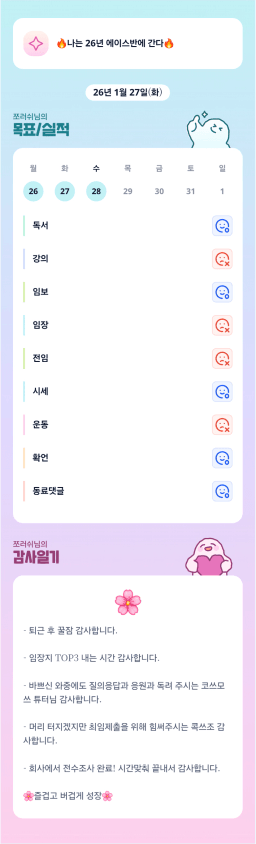 [지투실 27기 총총 뭉쳐서 부 한번 15켜보조 웨타]1.28. 목실감❤️
