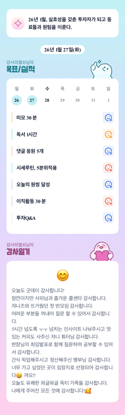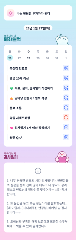 [지투실 27기 ㅈ1투에서 투자하고ㅅ1포도링 걸부]매일목실감