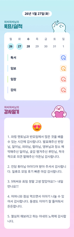 [에이스1반/독서TF 허씨허씨] 1.27 감사일기