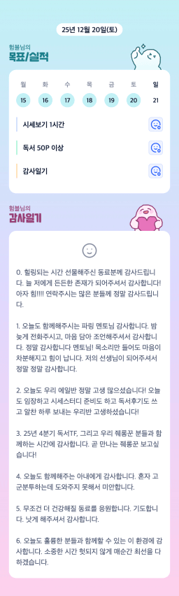 [에이스1반/독서TF 험블] 12월 20일(토) 감사일기