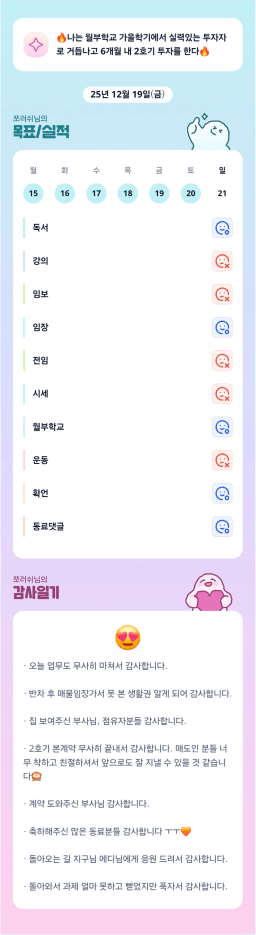 [내마실 엔젤빈쓰 튜터님과 함께하니 4주? 아니조~ 3주만에 내집마련 성공했조 채니] 25.12.20 목실감