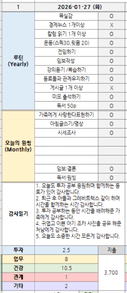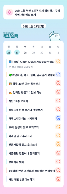 [나무해 월벗] #1368. 26.01.27 목표/실적
