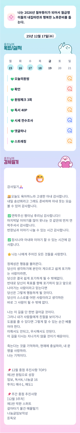 [에이스1반/독서TF 25.4Q 운조] 목실감 12/17-12/18