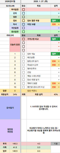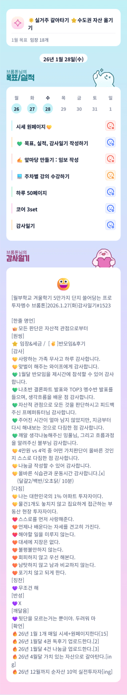 [월부학교 겨울학기 5만가지 단지 쓸어담는 프로투자멩수 브롬톤]2026.1.27(화)목표실적#1523