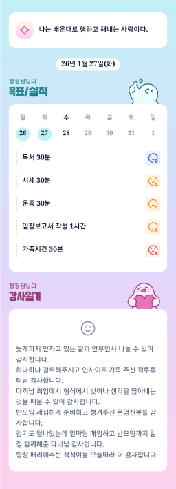 [실준반 72기 72개월 동안 앞마당 5️⃣0️⃣개 가능하조❤️ 꿈찾자] 26.1.27 목실감