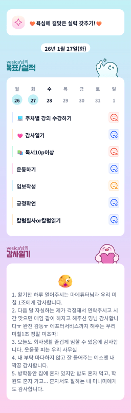 [지투27기 마메튜터님과 2번 앞마당에 미7 1조 투명혀니] 26.01.27 목실감