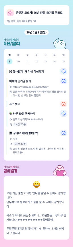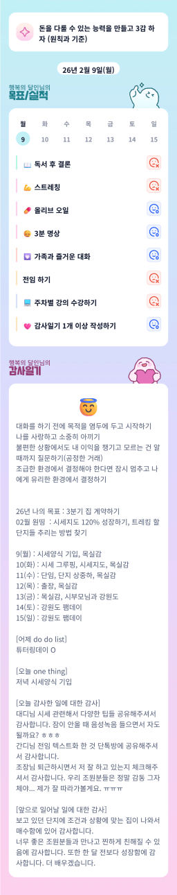 [서투기 30기 2월 갓생 살고 5를 단지사조 장장이] 260208 0209 목실감시금부