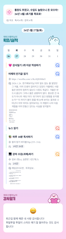 [지투실 27기 거봐 룰루랄라 튜터링 받고 그 집 4길 잘했지 풍월주인] 매일목실감 20260127
