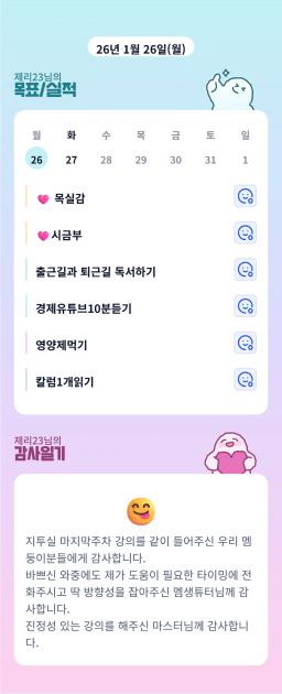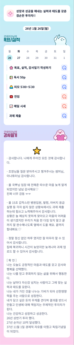 [지투 27기 6년안에 인생 파이어 하고싶조 성공2710] 매일목실감(1/26)