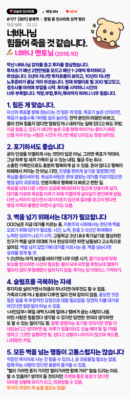 레키 칼럼요약 - 너바나님 힘들어 죽을 것 같습니다. (너바나 멘토님) #177