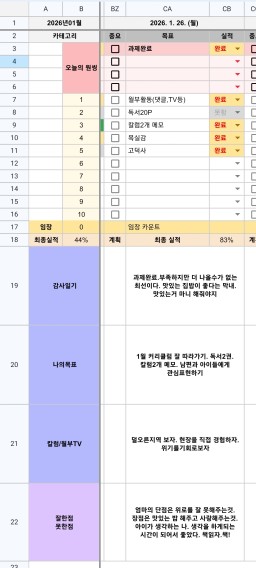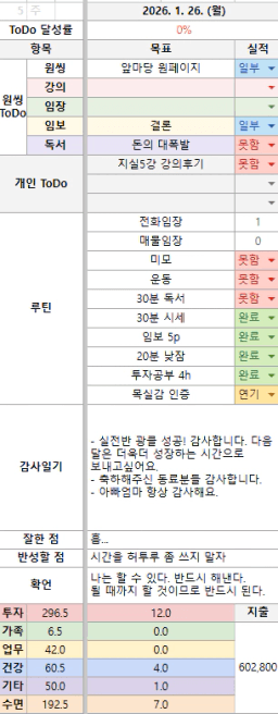 [나무해 월벗] #1367. 26.01.26 목표/실적