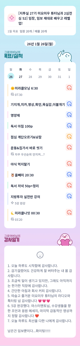 [지투 반나이튜터님과 원팀2면3단계성장할조_히히s] 260125-26 매일목실감