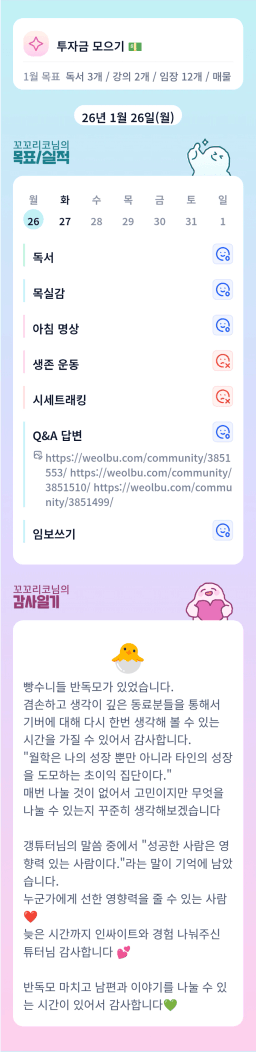 1/26 목실감 [월부학교 겨울학기 갱ㅈ1지튜터님의 0순위❤_꼬꼬리코]