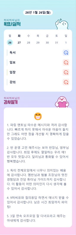 [에이스1반/독서TF 허씨허씨] 1.26 감사일기
