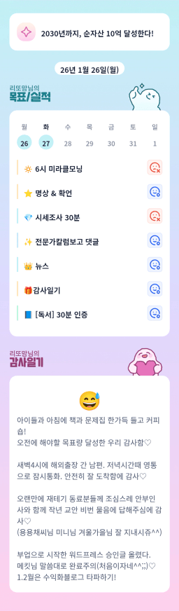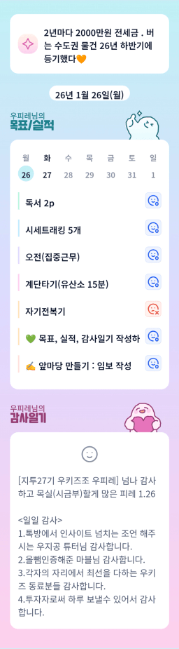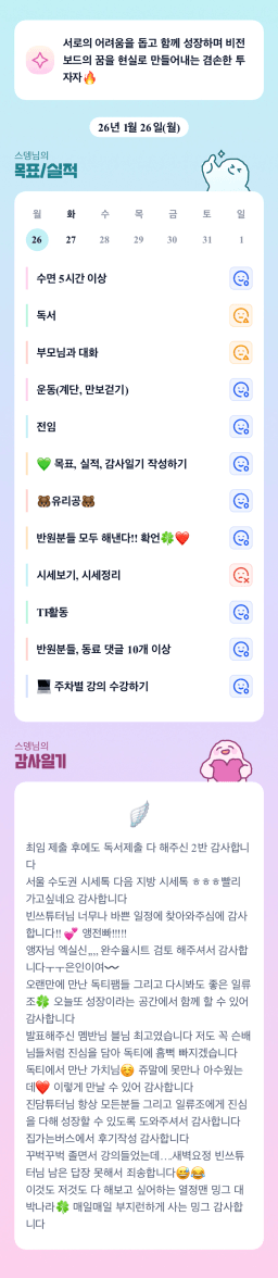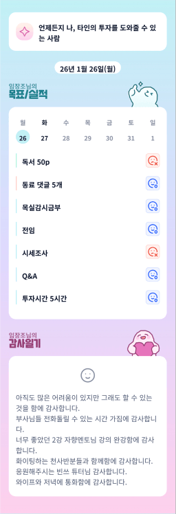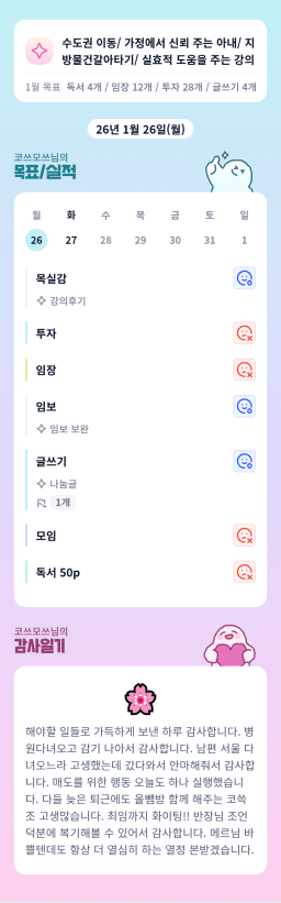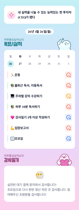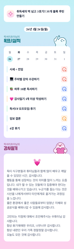 [지투실전 27기 쑤튜님과함께 🌱쑤욱쑤욱 성장하는 2린0ㅣ들/독서TF3조 럭셔리초이] 매일목실감 26.01.26