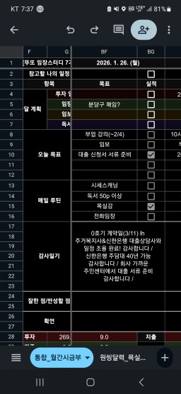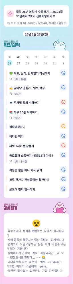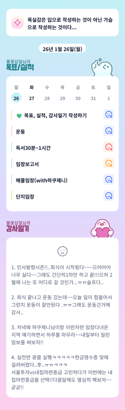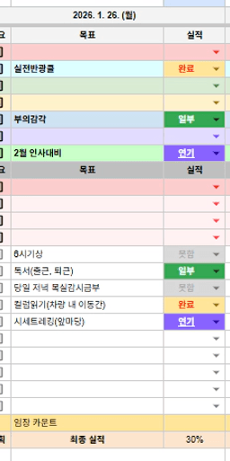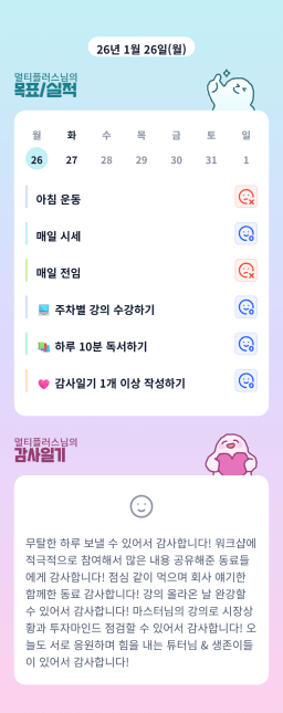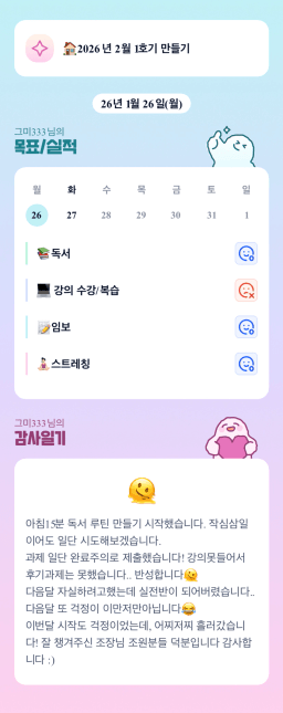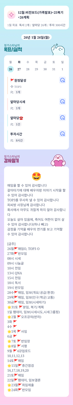 [정의] 2026년 1월 27일 목표, 실적, 감사일기