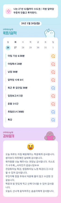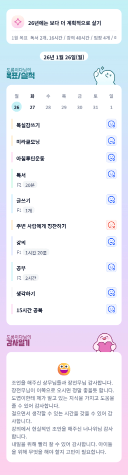 1/20~1/22(화~목) 목표실적 감사일기