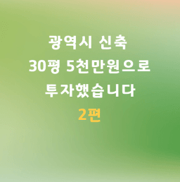 [1편]광역시 신축 30평 5천만원으로 투자하였습니다.(즐겁지 않던 투자)[나알이]