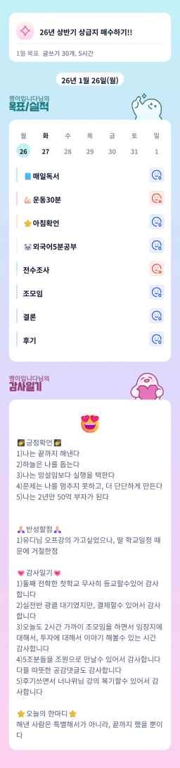 1/26일 목실감 [실준72기 경제적자유를 위해 5늘도 꾸준히하조 랭이입니다]