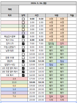 [짱이사랑맘] 1/26 목실감칭반시계부