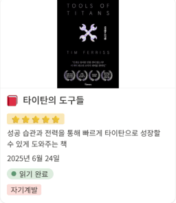 [열중 45기 17조(1주일 7일내내 책 읽조) - 꾸준히해보는거야] 올바른 믿음과 올바른 습관으로, 당신의 삶을 성취하라. (선택도서 타이탄의 도구들 독후감)