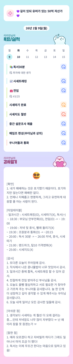 [실전34기 24시간 12개월 꾸준히 나알이 나아가조💙 더나은라이프] 2/9 목실감