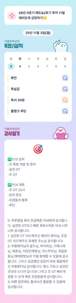 [월부학교 내게 3ㅏ랑이 뭐냐고 물어본다면=센쓰🤍 욜량] 목실감 11/03