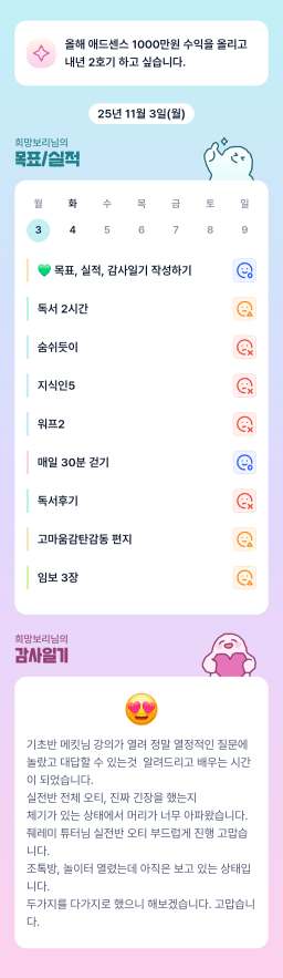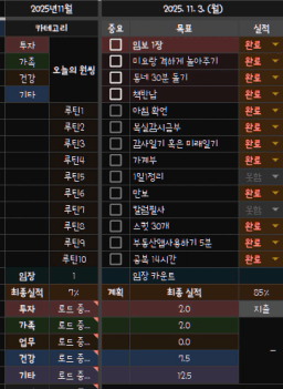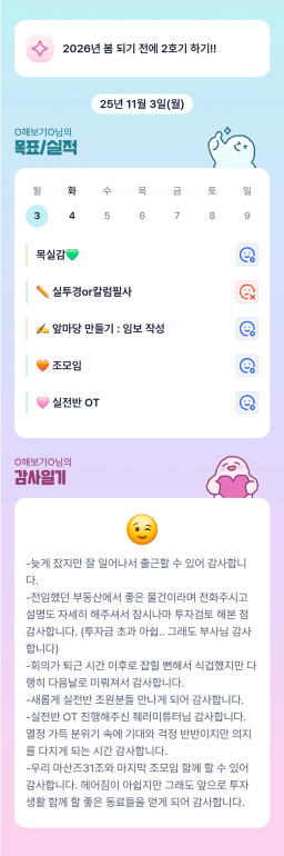 [나무해 월벗] #1283. 25.11.03 목표/실적