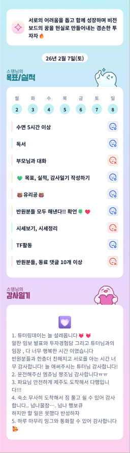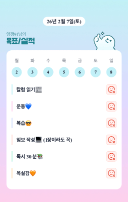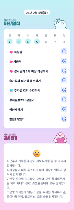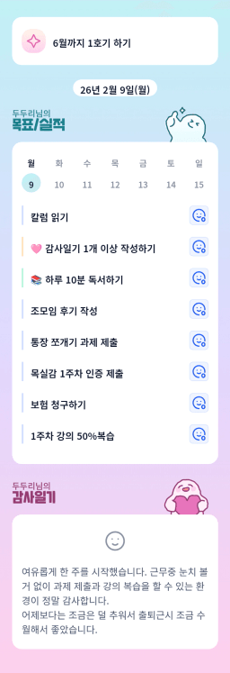 [러버블리v] 26.2.9 목표, 2.8 감사일기 + 칭반